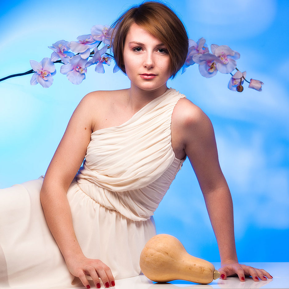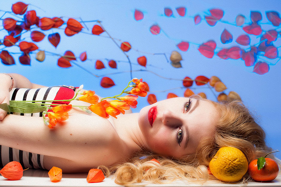 Une autre série, un peu inspirée des "Jeunes Filles en Fleurs", au look résolument moderne et aux couleurs franches, mêlant les teintes chair avec des objets insolites.